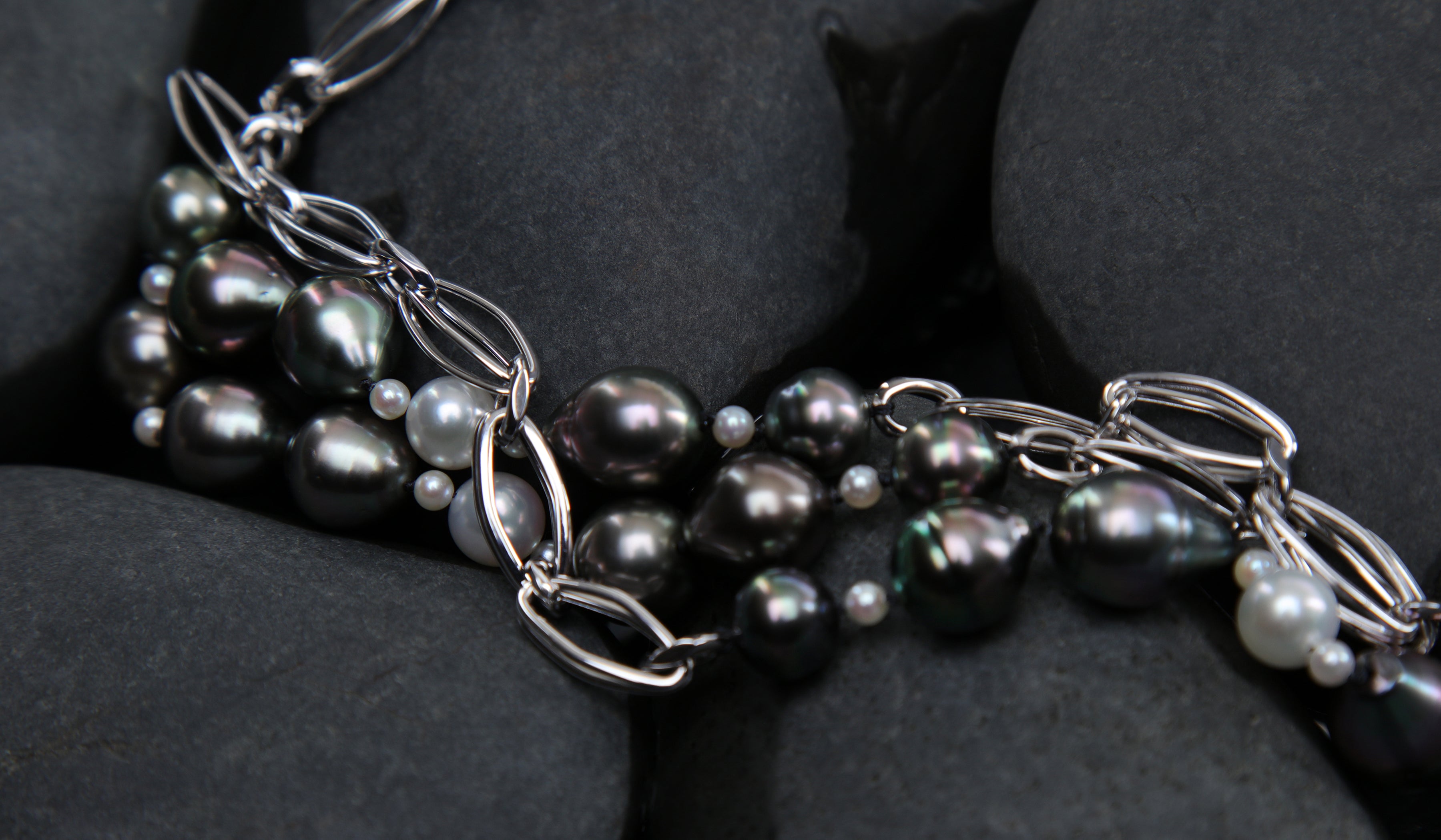 Where Tradition Meets Today: this opera-length masterpiece alternates lustrous sections of Tahitian and Akoya pearls with sumptuous Italian white gold chain, meticulously crafted into distinctive double marquise links that flow seamlessly throughout. With each graceful movement, the chain captures and reflects light, creating a composition that marries bold sophistication with refined elegance.